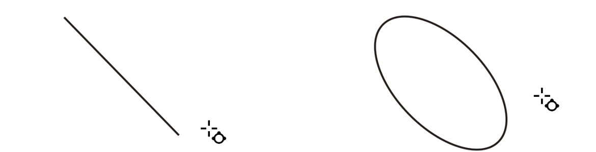 Using the 3-point ellipse tool, you can draw an ellipse by first drawing its centerline and then drawing its height. This method lets you draw ellipses at an angle.
